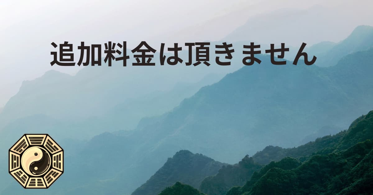 私の風水鑑定では、一切追加料金を頂きません。ご提示した金額は、お客さまが必要とするサポートをすべて提供する金額を提示しております。